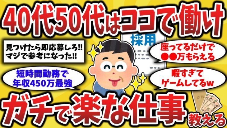 今回紹介する動画は「シニアの2ch有益速報【ゆっくり解説】」様の 「【2ch有益スレ】40代50代にガチおすすめ!当たり求人の仕事と職種を挙げてけww老後の貧困に負けるな!【ゆっくり解説】」です! 40代50代向けガチで楽な仕事の体験談を2ch民が話し合っています。 実際に働いてみて当たりだった仕事 […]